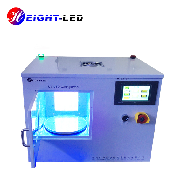 一款針對(duì)UV膠粘劑固化設(shè)計(jì)的高性能UVLED光固化系統(tǒng),該系統(tǒng)采用箱式結(jié)構(gòu)內(nèi)部放置UVLED照射頭及控制板,外加可透視窗口。共有兩個(gè)出光面,頂部出光面積200X200mm,側(cè)面出光面積為150X120mm,UV光譜波長為365nm,采用強(qiáng)制水冷散熱,支持外部信號(hào)輸入及觸發(fā),箱門處裝有傳感器,關(guān)門燈亮關(guān)門即滅,底部裝有轉(zhuǎn)盤,可根據(jù)需要調(diào)整轉(zhuǎn)速,保證受光均勻度及異型件側(cè)面點(diǎn)膠位置的UV固化能夠充分進(jìn)行。